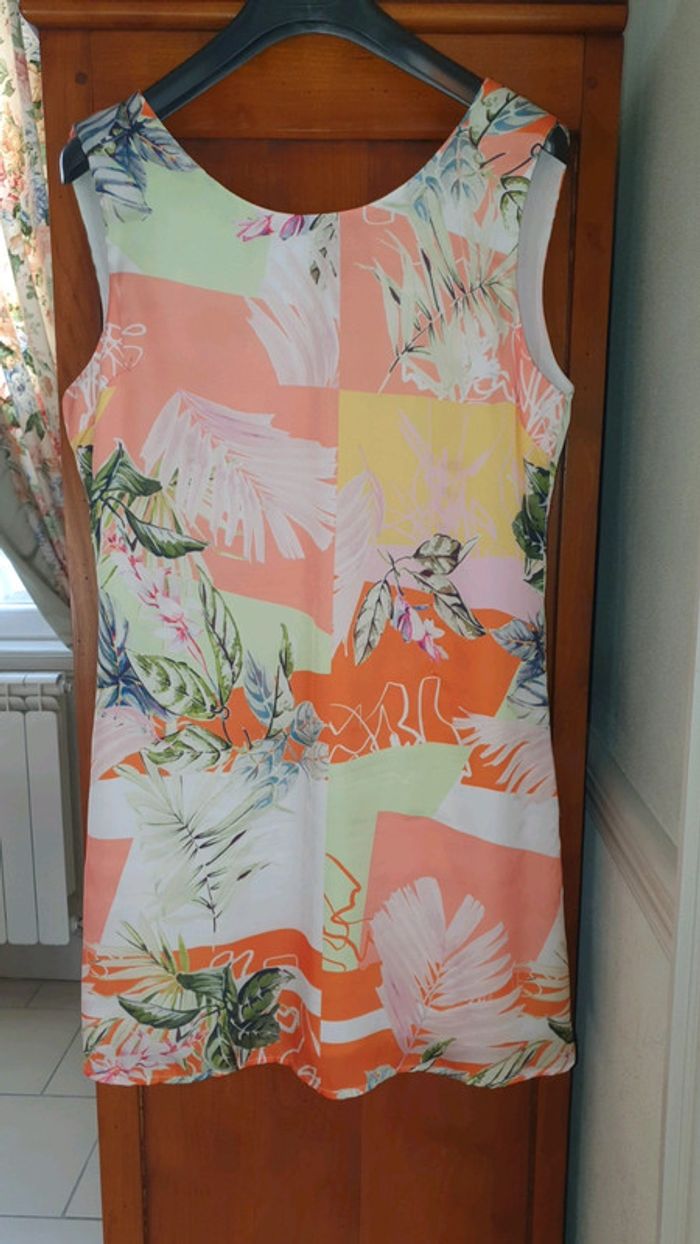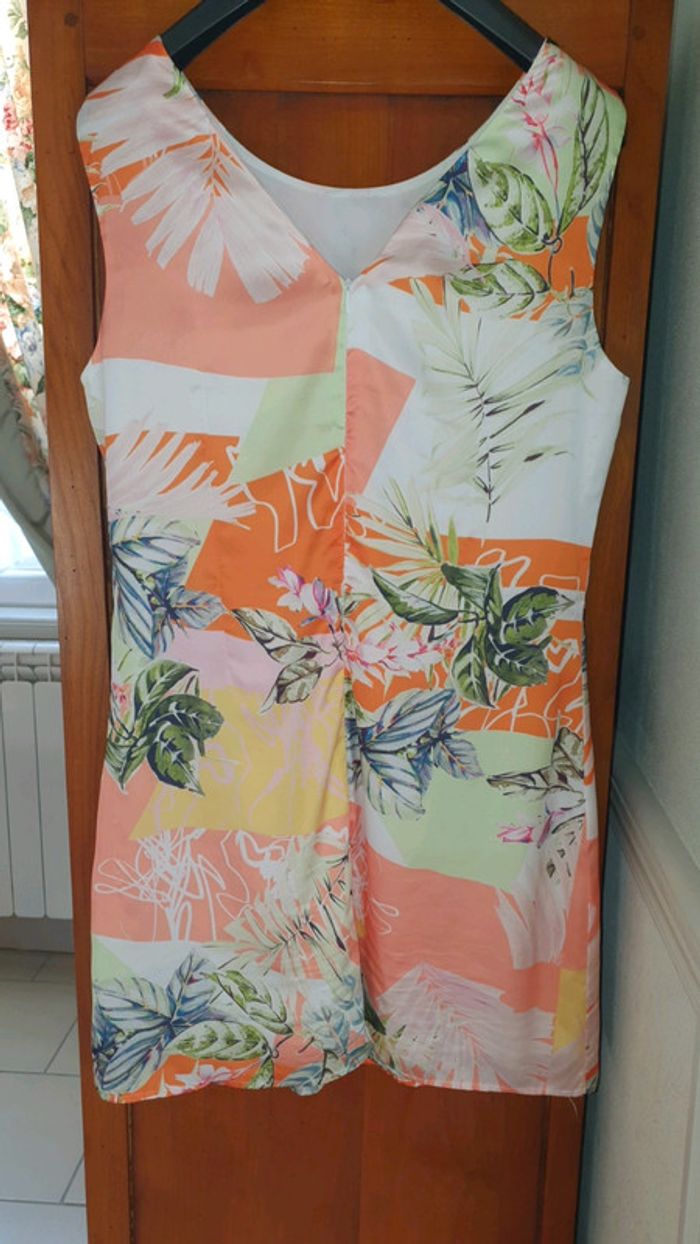 Robe femme d'été Manches courtes Neuve Avec fermeture dans le dos Avec doublure 100% polyester Taille 40 64cm de longueur (en dessous de l'épaule jusqu'en bas) 47 cm de largeur à la taille Les réductions sont activées sur les lots