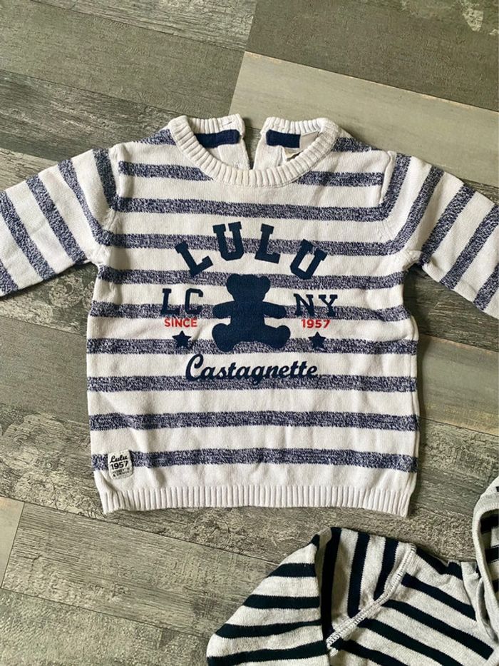 Lot compose d’un pull rayé et d’un gilet a fermeture Marque Lulu Castagnette et 3 pommes Taille 6 mois TBE #6mois #6moisgarçon #pull6mois #pull6moisgarcon Articles similaires dans mon dressing : #heuzef6mois