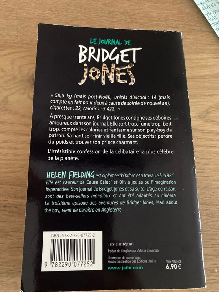 Titre du livre : Le Journal de Bridget Jones Auteur : Helen Fielding Type : roman en très bon état
