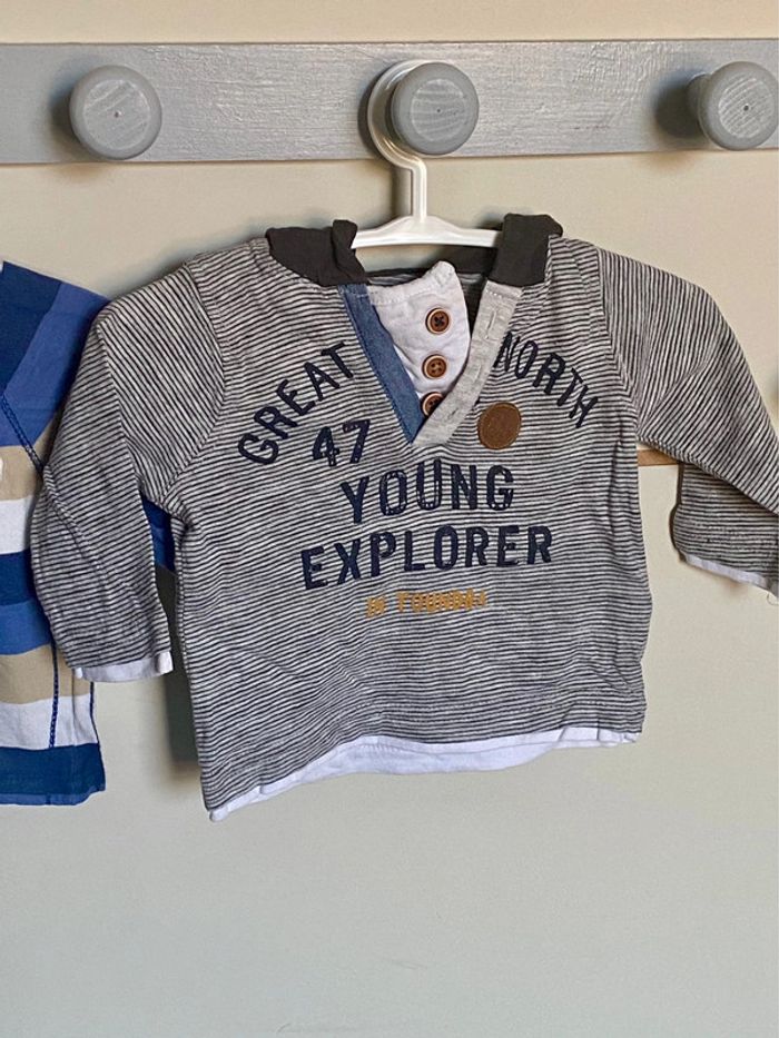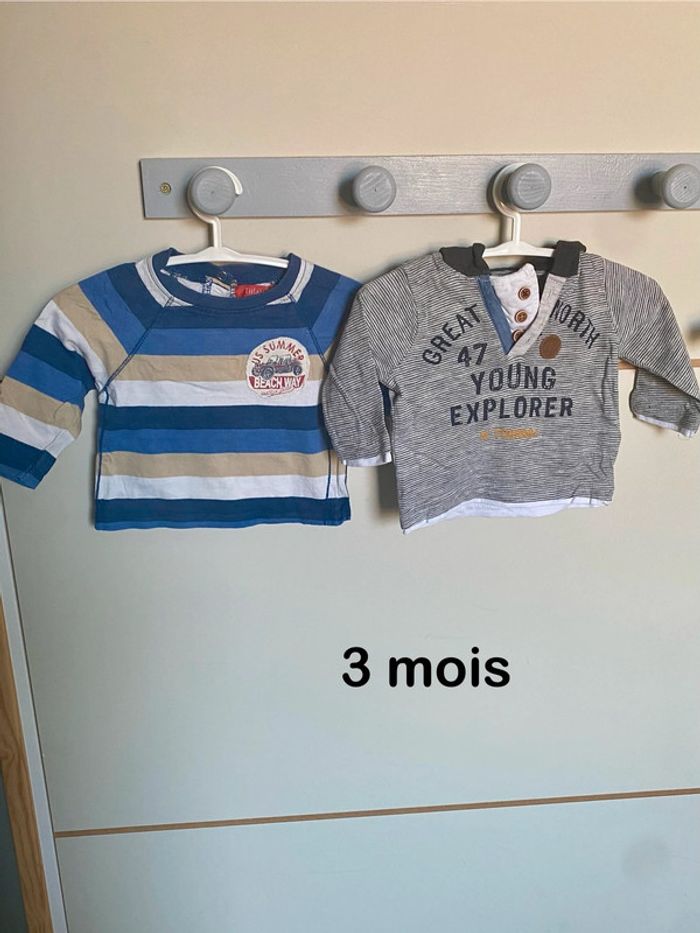 Ensemble composé de 2 tee-shirts a manches longues en taille 3 mois en TBE marque GEMO #3mois #3moisgarcon #teeshirt3mois #teeshirt3moisgarcon Articles similaires dans mon dressing : #heuzef3mois