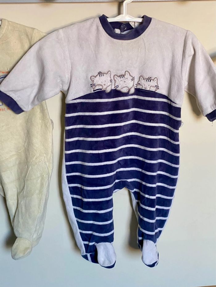 Pyjama jaune tout doux avec 3 petits poussins et pyjama doux bleu et blanc avec 3 chats en taille 3 mois TBE #3mois #3moisgarcon #pyjama3mois Articles similaires dans mon dressing : #heuzef3mois