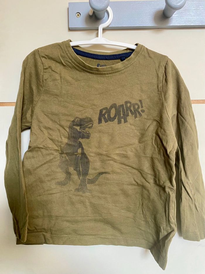 Lot composé de 2 tee-shirt a manches longues avec dessins de dinosaures en taille 2 - 4 ans mois TBE #24mois #24moisgarcon #teeshirtmancheslongues24mois #teeshirt24mois Articles similaires dans mon dressing : #heuzef24mois