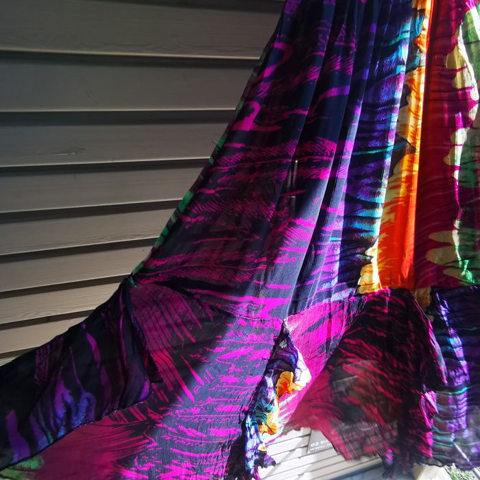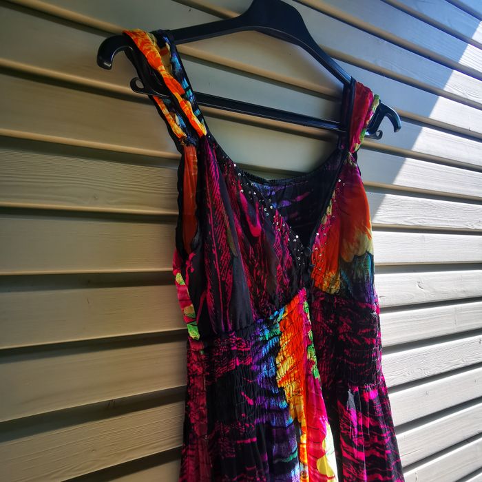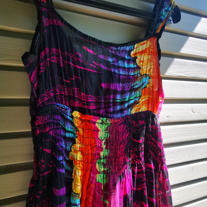 Très jolie robe en voile transparent (avec doublure noire), au décolleté plongeant!