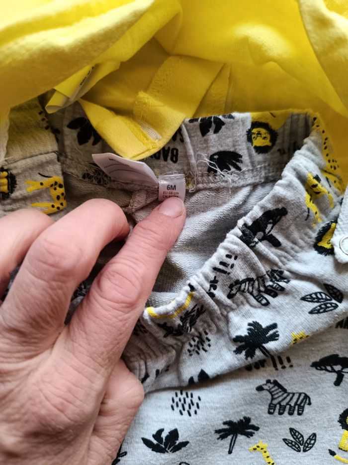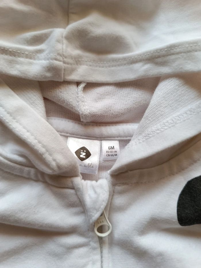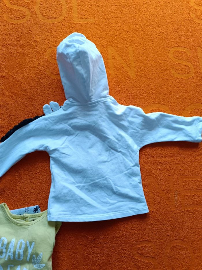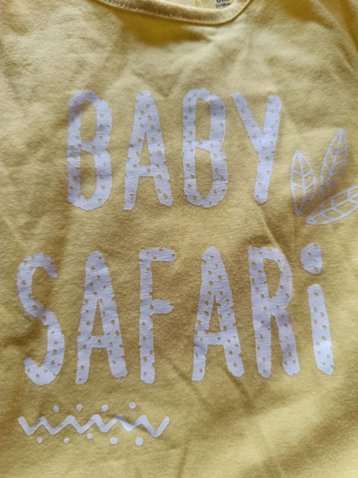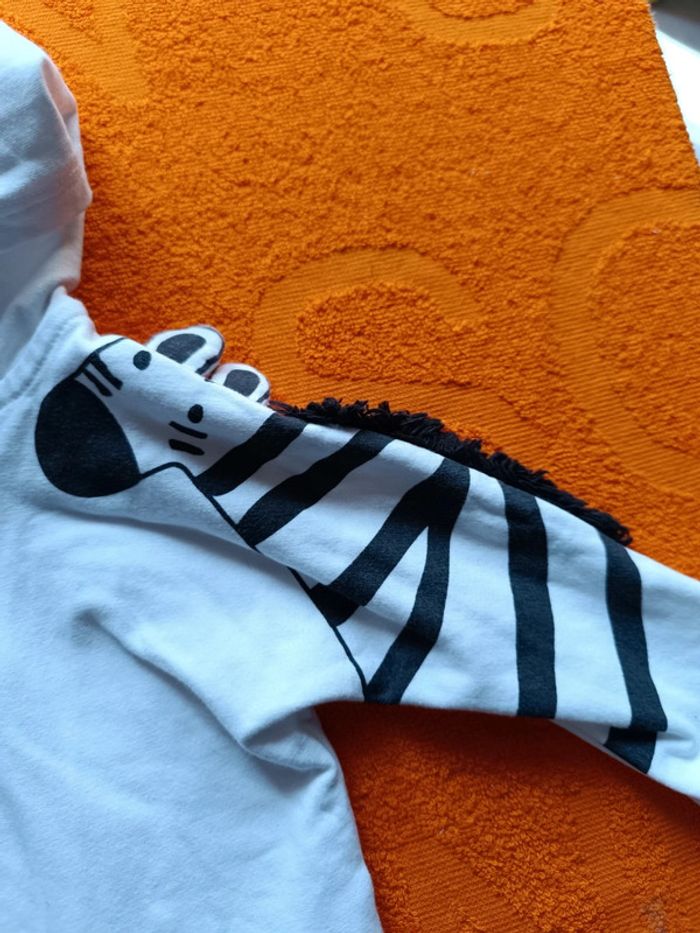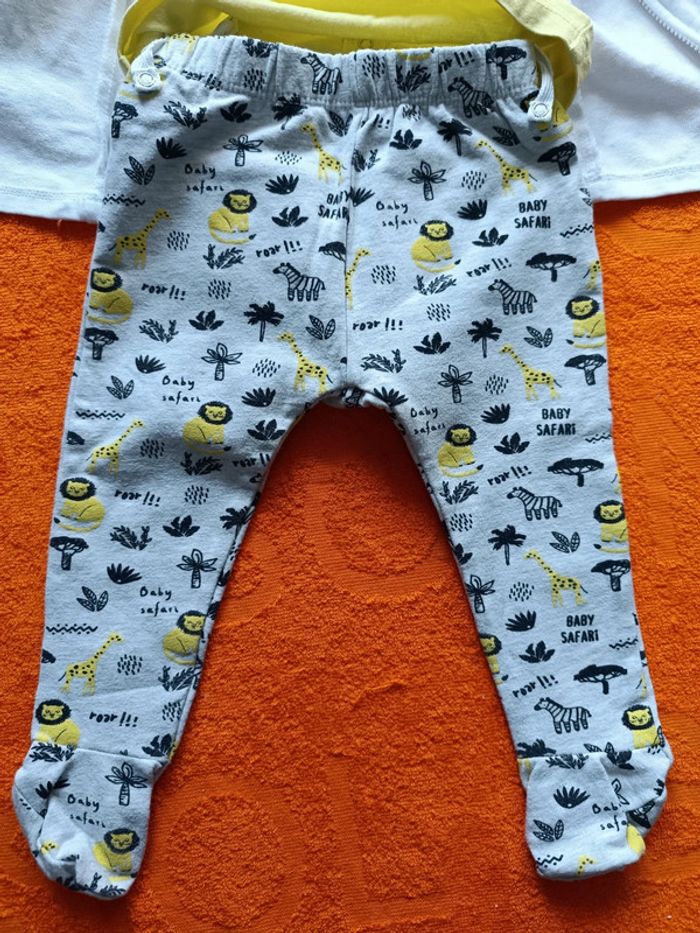 Un ensemble 3 pièces de la marque Z , trop mignon avec un t-shirt manches longues jaune “baby safari” , un gilet blanc à capuche avec deux imprimés zèbre et un pantalon à motif animal