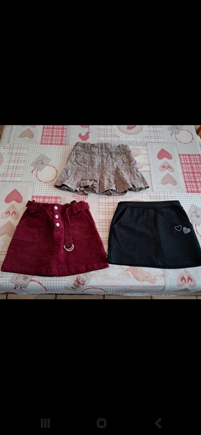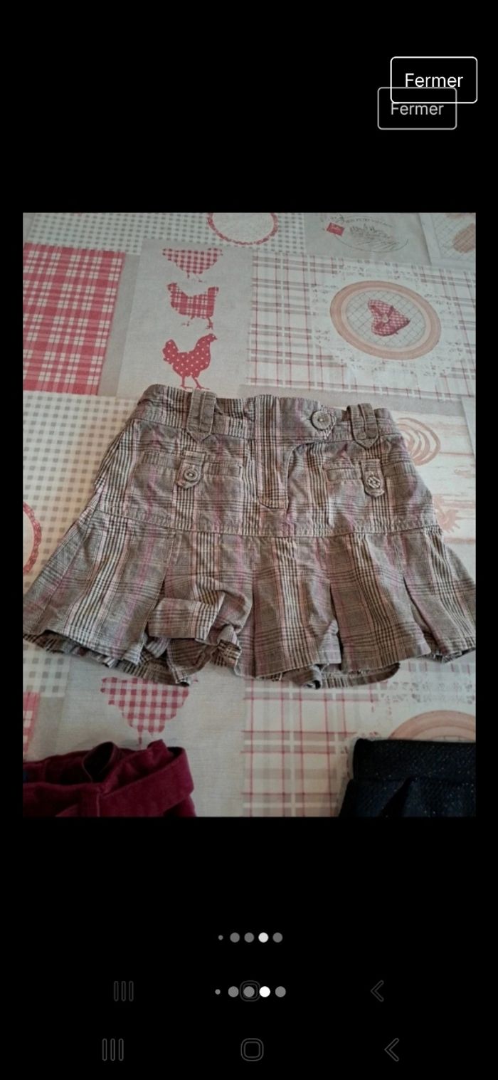 1 jupe okaidi en velours neuve passée 1x en machine 6ans 1 jupe noir paillette 6ans neuv passée 1x en machine 1 jupe écossaise plissée beige 6ans vinyle fraise tbe Lot depareillable recomposable Maison non fumeur, pas d'animaux, premieremain. Possibilité de reduire frais de port D'autres vetements neufs sur #laul57fille6an