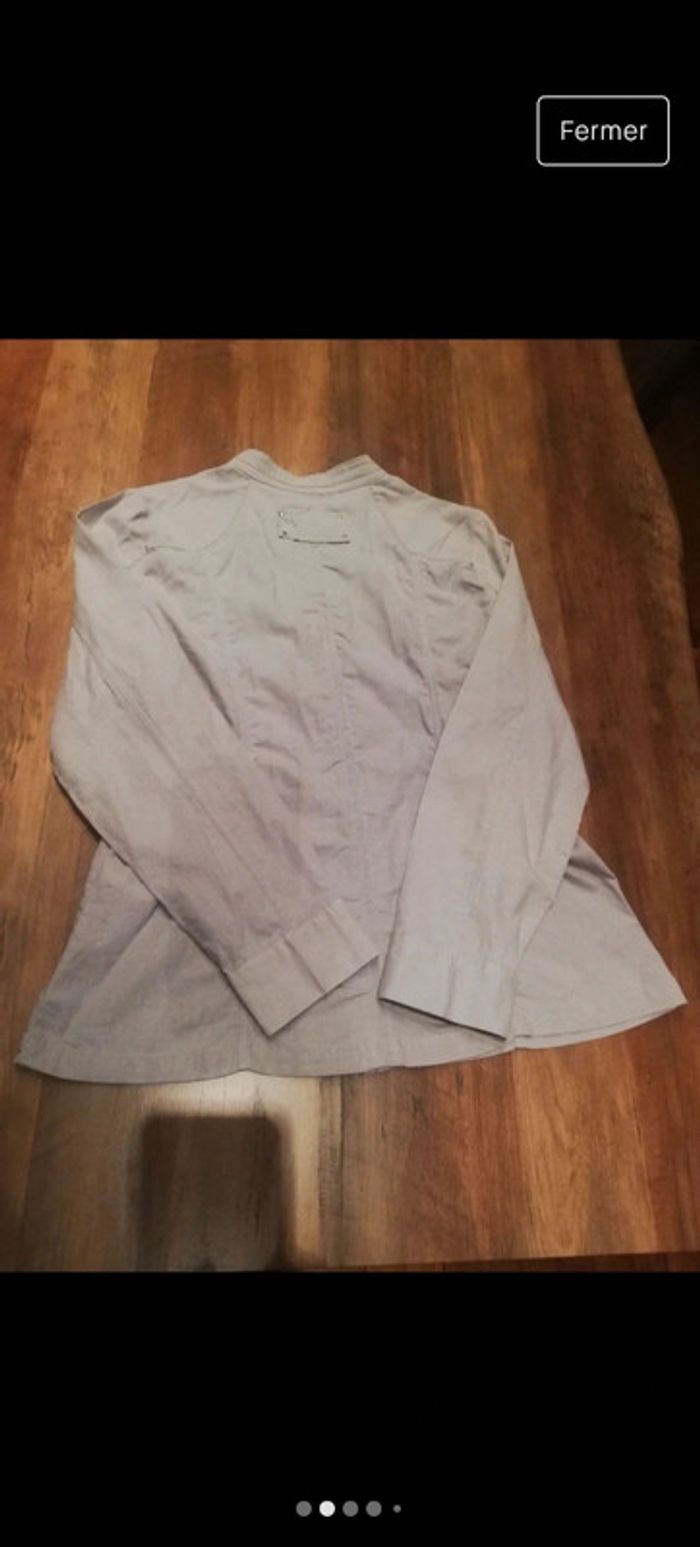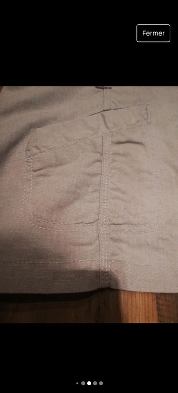 Se ferme avec des boutons, possibilité de mettre une ceinture (vendue avec) Boutons aux manches Coupe droite, légère Lin et coton 1 bouton de rechange Taille 4 qui correspond à une taille 36/38