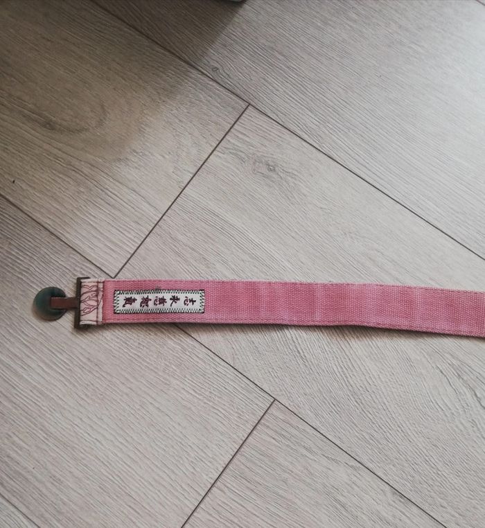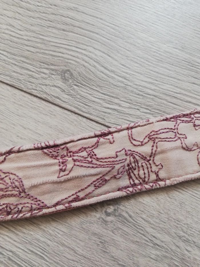 A servi mais peut encore servir, usure normale Matière tissu, souple Couleur rose/lilas Longueur: 95 cm