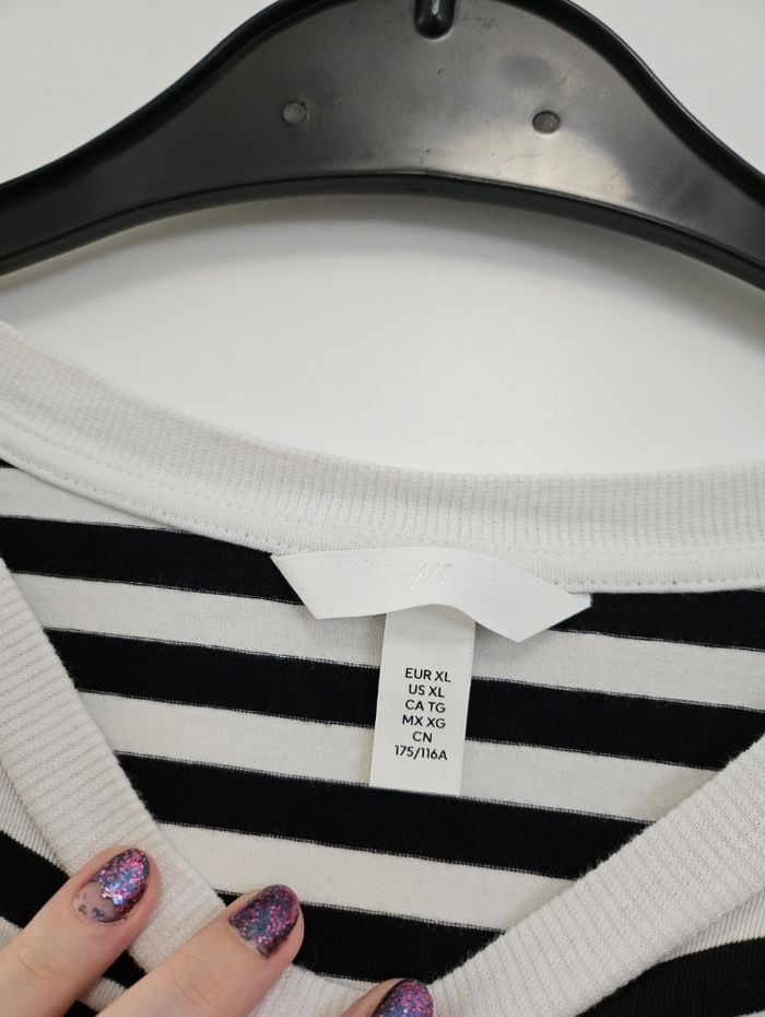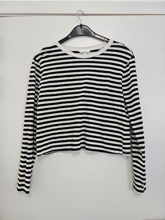 Haut ligné Neuf sans étiquette Jamais porté Marque h&m Taille XL correspond à une taille 46-48 Couleur noir et blanc ligné fin Coupe courte Manches longues Col rond Envoi soigné