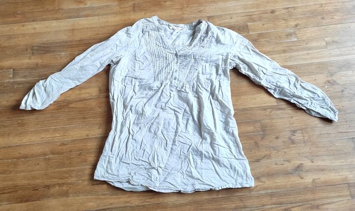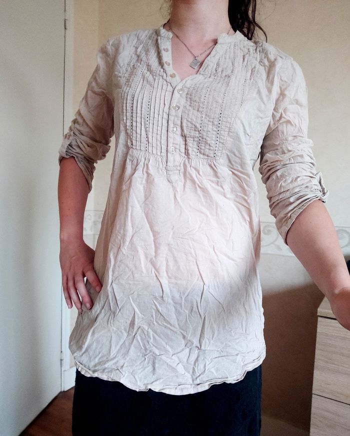 Joli haut beige style ethnique, possibilité de mettre les manches 3/4.