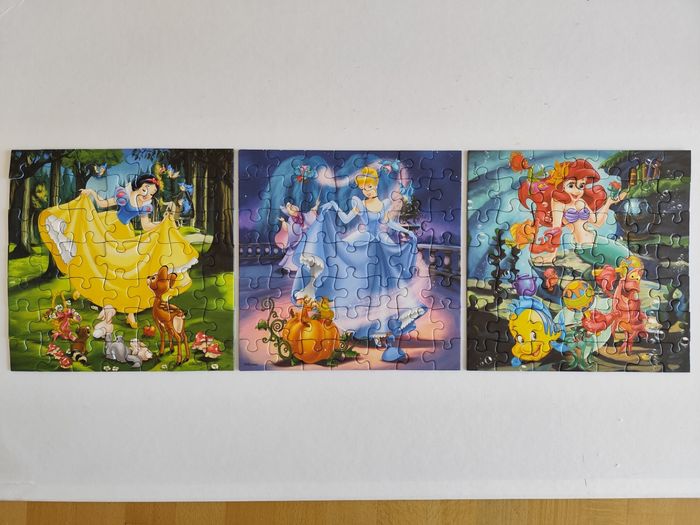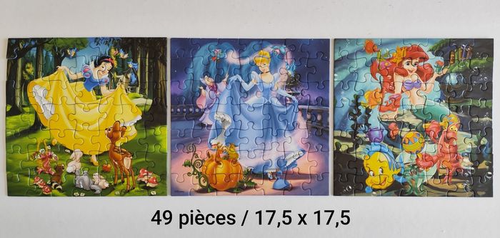 Puzzles princesses Disney 49 pièces 17,5cm x 17,5cm 3€ les 3 Très bon état Sans boîte - marquage au dos si mélange de plusieurs puzzles