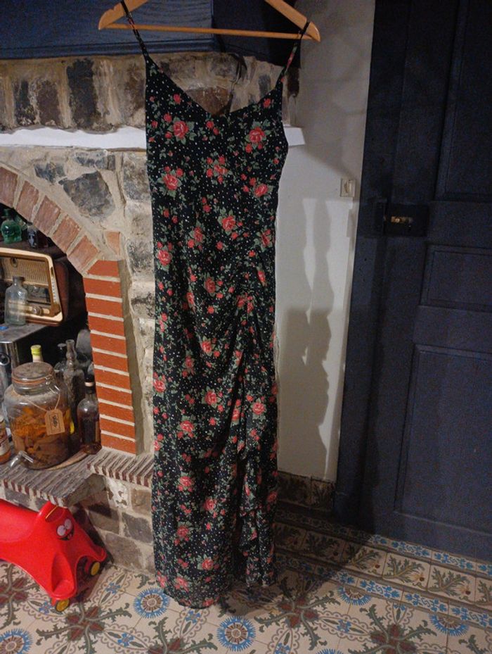 Robe longue fendue roses rouges - photo numéro 1