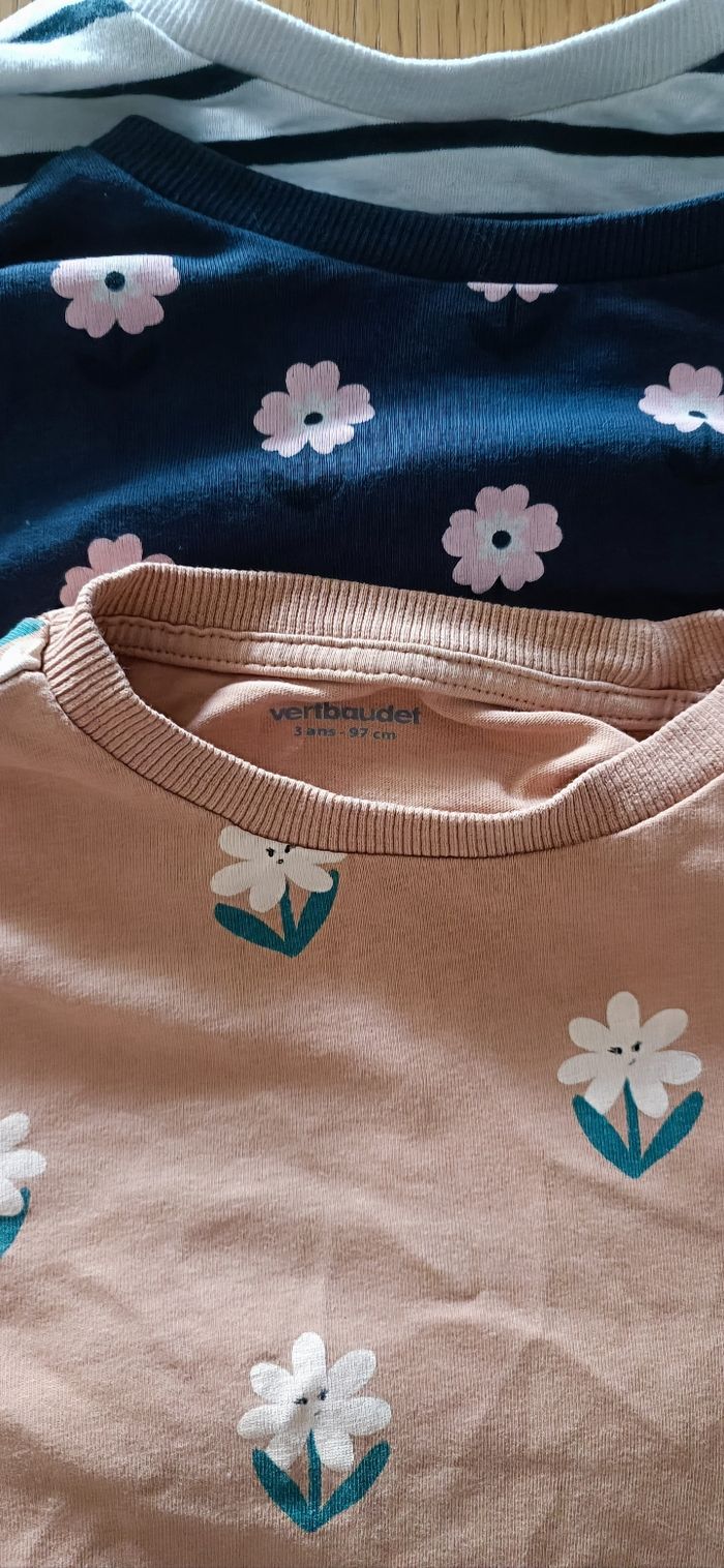 ⚠️Veuillez consulter mes autres articles, je suis en train de m’en débarrasser⚠️ État : très bon état : aucune imperfection Marque : Vertbaudet Taille : 3 ans - 97 cm Couleur : 1x camel avec fleurs all over+ 1x bleu marine avec fleurs all over + 1x marinière bleu marine et blanc Genre : fille Composition : 100% coton Col rond Lot possible avec mes autres annonces. Envoi rapide (Mondial Relay) et soigné Ouvert à la négociation Pas d'envoi à moins de 5€ #vertbaudet #vertbaudetfille #vertbaudet3ans #vertbaudetfille3ans #vertbaudettshirt #tshirt #tshirtfille #tshirtmancheslongues #tshirt3ans #tshirt3ansfille #fille #fille3ans #3ans #3ansfille #tshirtcoton #coton100pour100 #coton #seb310105