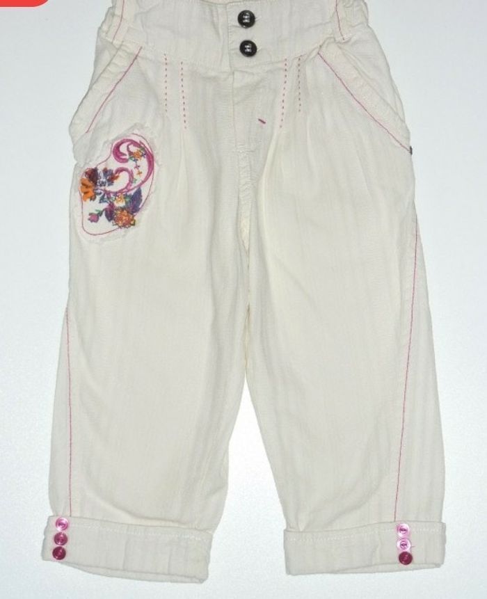 Pantalon de marque MARESE blanc, broderies roses. Très bon état Marèse Vide dressing professionnel