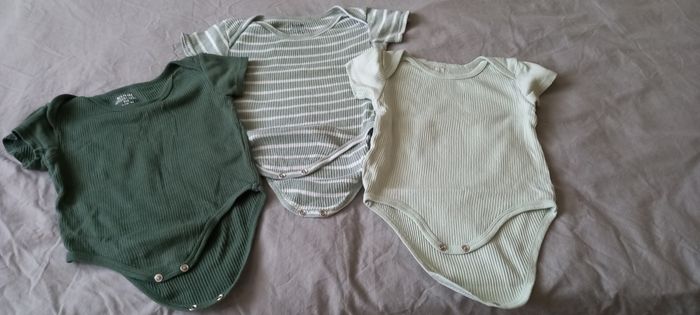 Lot 3 bodies Kiabi Ton vert Taille 9 mois #enfants_imoddeco