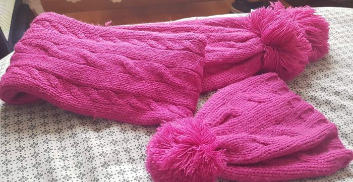 Bonnet echarpe en laine rose Double épaisseur pour l'écharpe Pour enfant Taille echarpe 150cm / 15cm