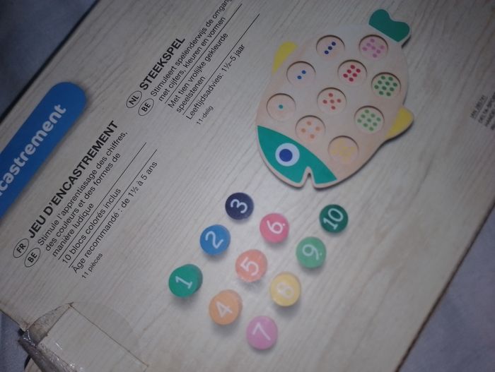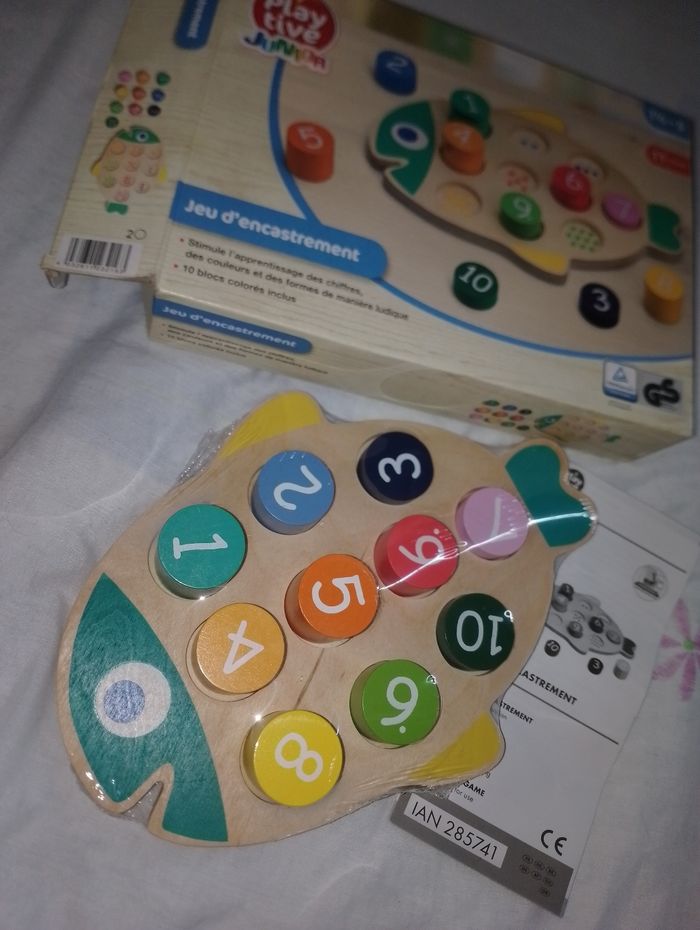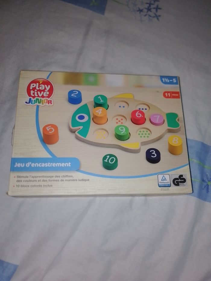 Jeu d'encastrement play tive junior neuf Stimule l'apprentissage des chiffres, des couleurs et des formes de manière ludique 10 blocs colorés inclus 1mois1/2 -5ans