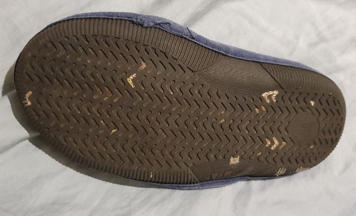 Pantoufle bleue marine Tex Taille 35 Très peu mise. Dessin sur le devant tout craquelé. Semelle sale