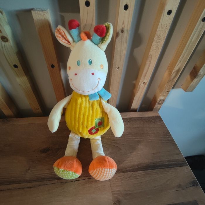 Mots d'enfants doudou girafe jaune bleu blanc rouge orange pomme champignon echarpe Collection 2013 15 euros Envoi en relais