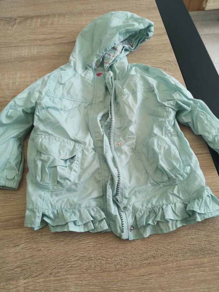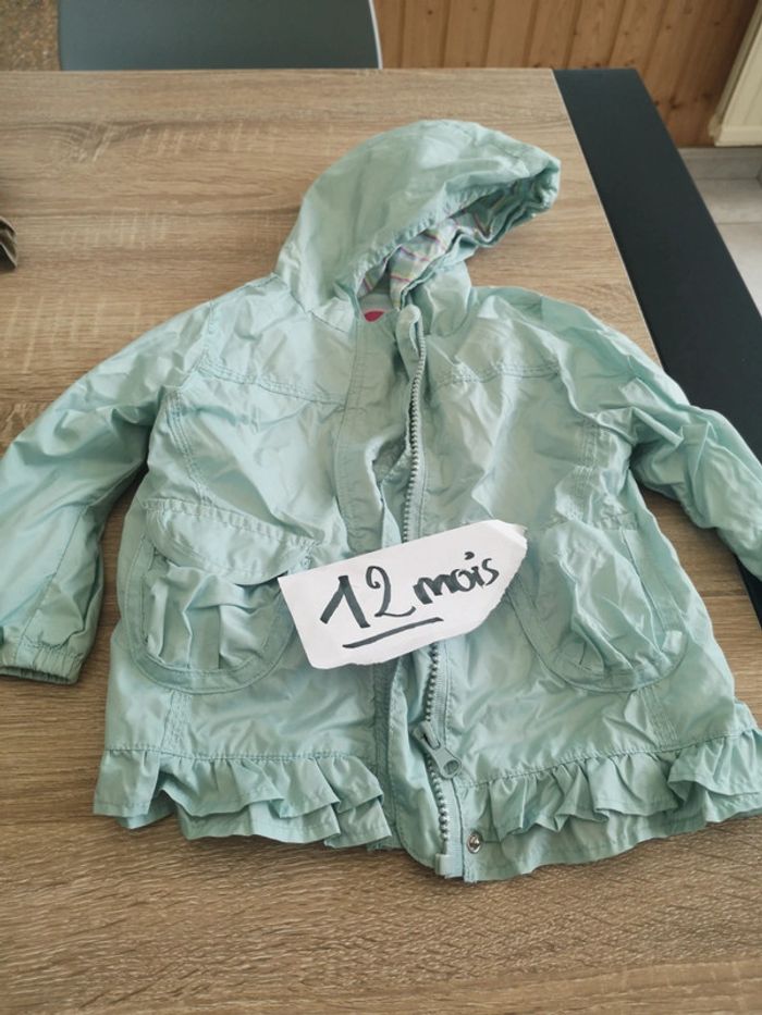 Blouson imperméable taille 12 mois en parfait état. Bleu turquoise Marque kitiwatt