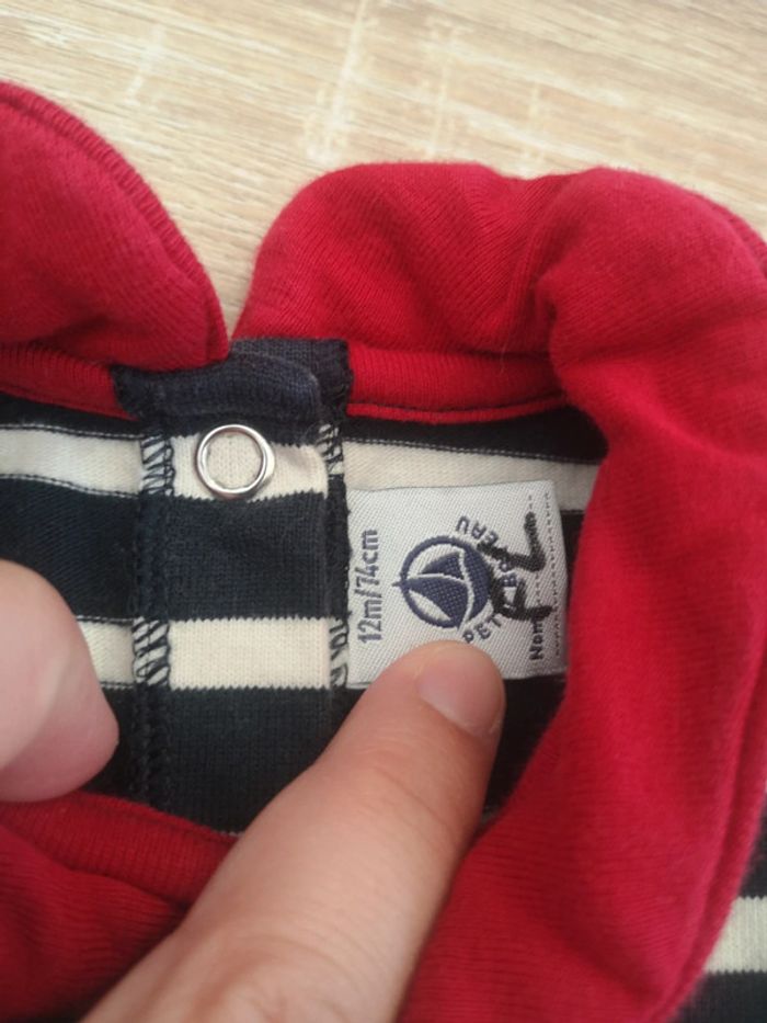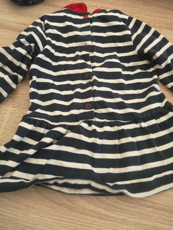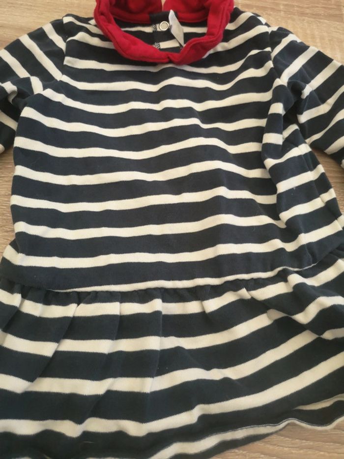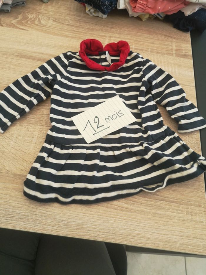 Belle robe épaisse, rayée blanche bleu marine. Taille 12 mois Marque petit bateau