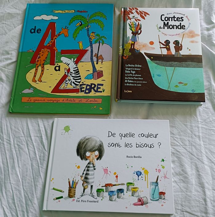 🚨Lot indissociable, prix ferme et définitif ⛔ - De A à Zèbre - Le grand voyage d'Adèle et Zorba - Contes du Monde (Iran, Danemark, Russie, Madagascar, Argentine, Chine, Australie) - De quelle couleur sont les bisous ? De bon état à comme neuf #livreenfantcamilled974