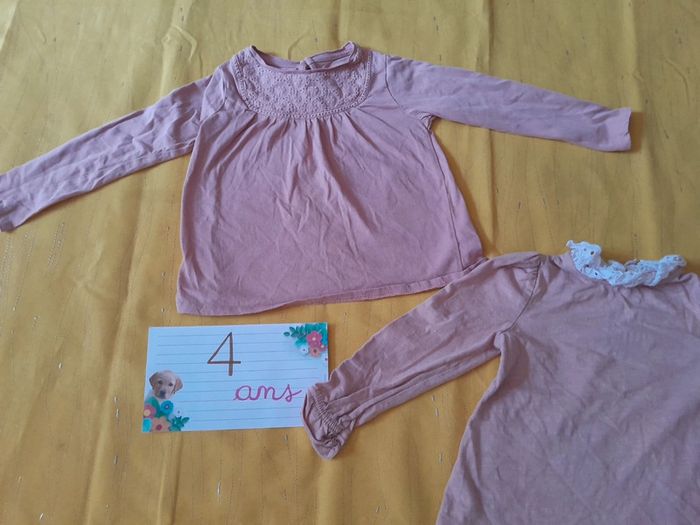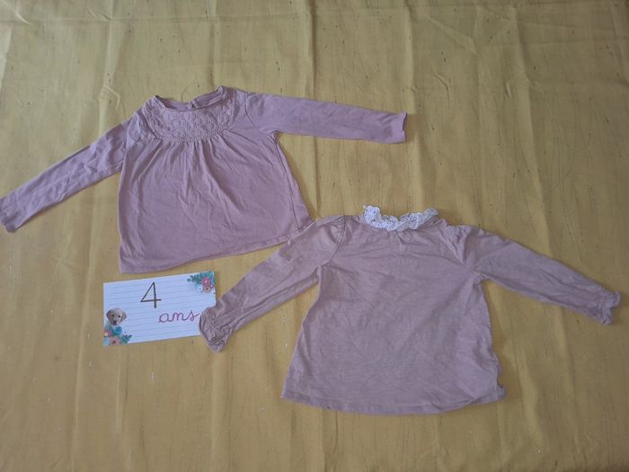 Lot de 2 tee shirt rose (vieux rose) Vertbaudet 4 ans - photo numéro 1