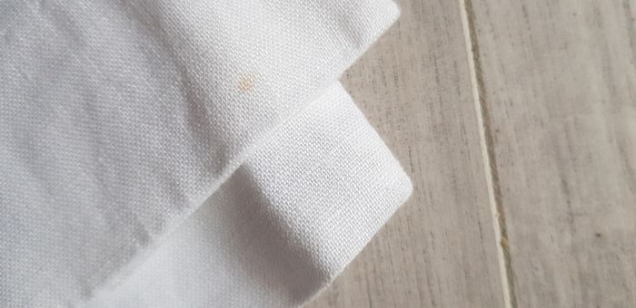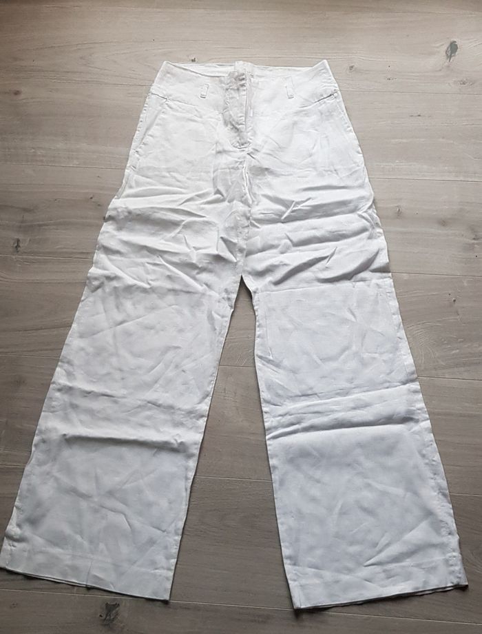 Jamais porté mais un petite tache sur le bas du pantalon ( 3ème photo) elle ne se voit pas je m'en suis aperçu au moment de prendre la photo. Taille 36