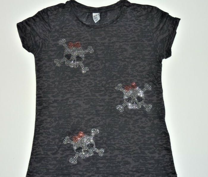 Tee Shirt de marque ZARA d'occasion en excellent état. De couleur noire et gris fumé, il se pare d'un motif résolument rock en sequins brillants. Zara Vide dressing professionnel
