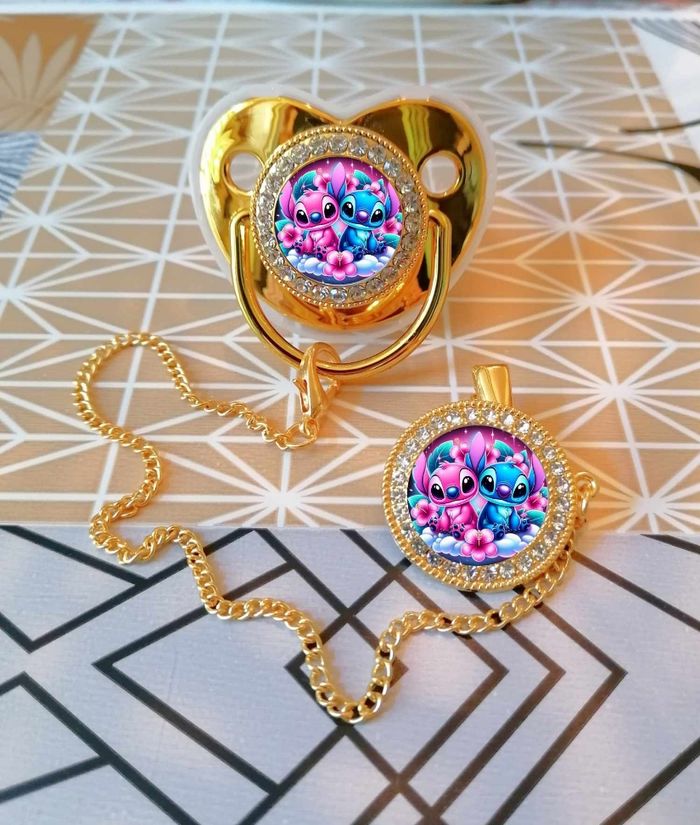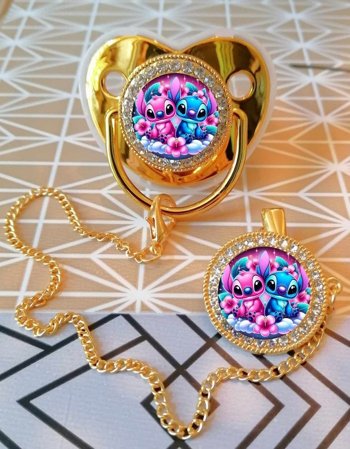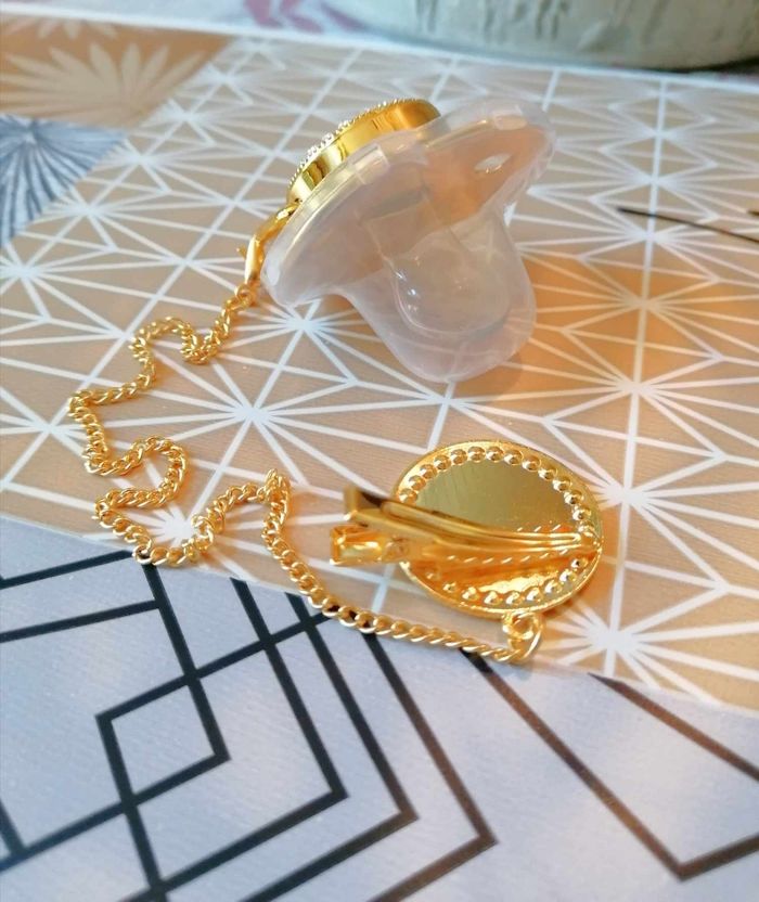 Tétine strass avec attache Couleur OR Protection tétine inclus Tétine 100% Silicone, Sans BPA. Tétine orthodontique, taille unique. Neuf emballé