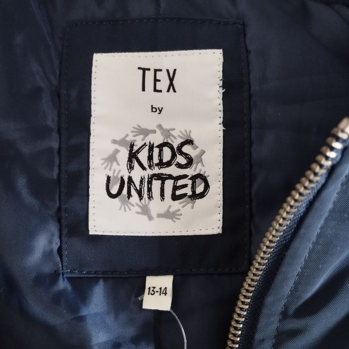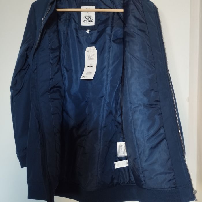 Manteau Neuf Tex Kids United pour enfants de 11/12ans, couleur bleu marine, s'ouvre par fermeture éclair métal, 2 poches avant fermées par un bouton pression, 1 petite poche fermeture métal sur une manche, acheté 30€.