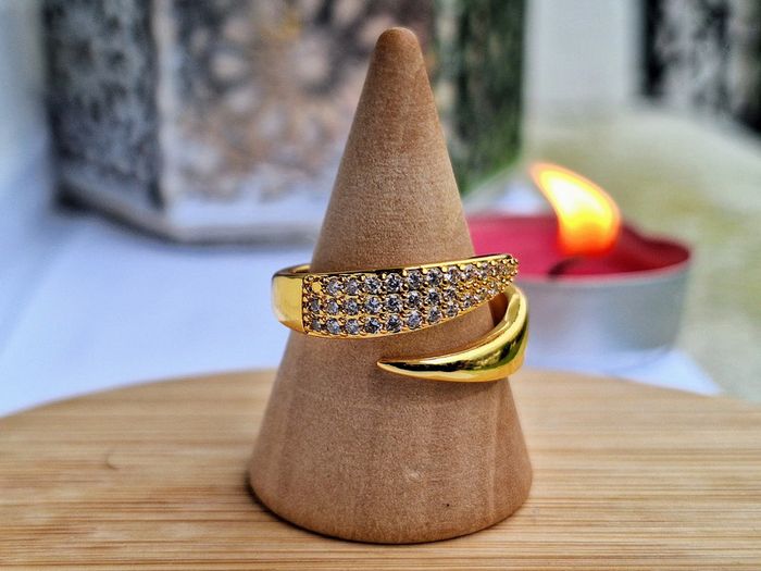 Bague ouverte avec strass design Griffe en Acier Inoxydable Bague de fiançailles ajustable - photo numéro 1