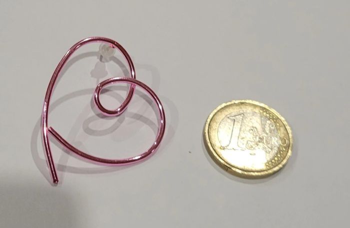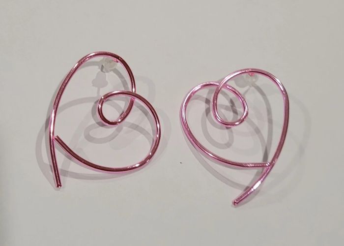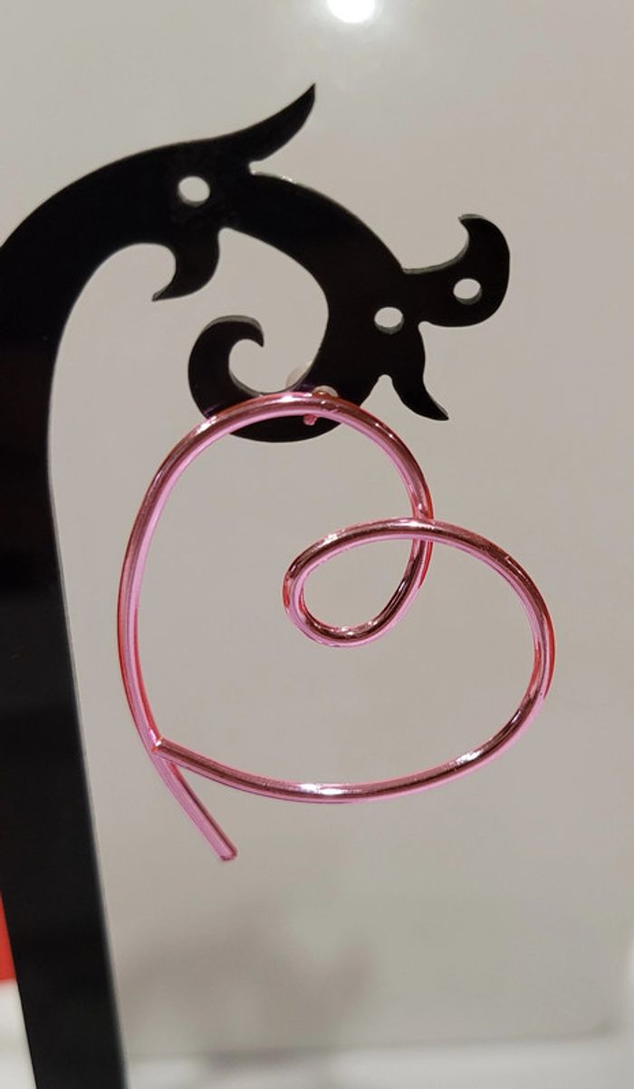 BOUCLES D'OREILLES FORME COEUR ROSE METALLIQUE ! NEUF ! - photo numéro 4