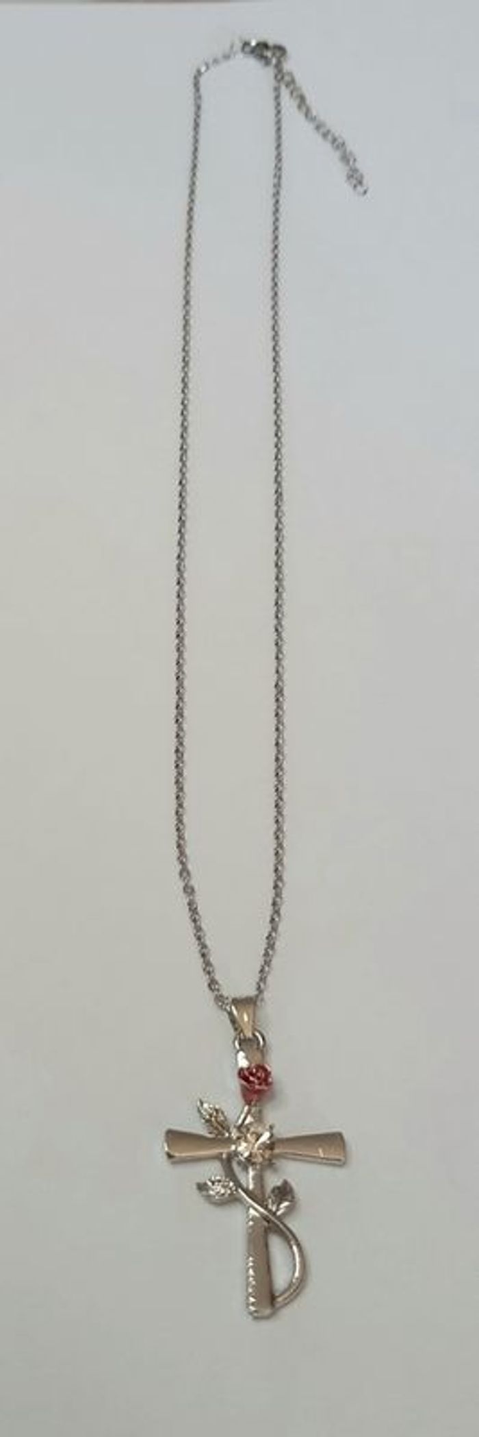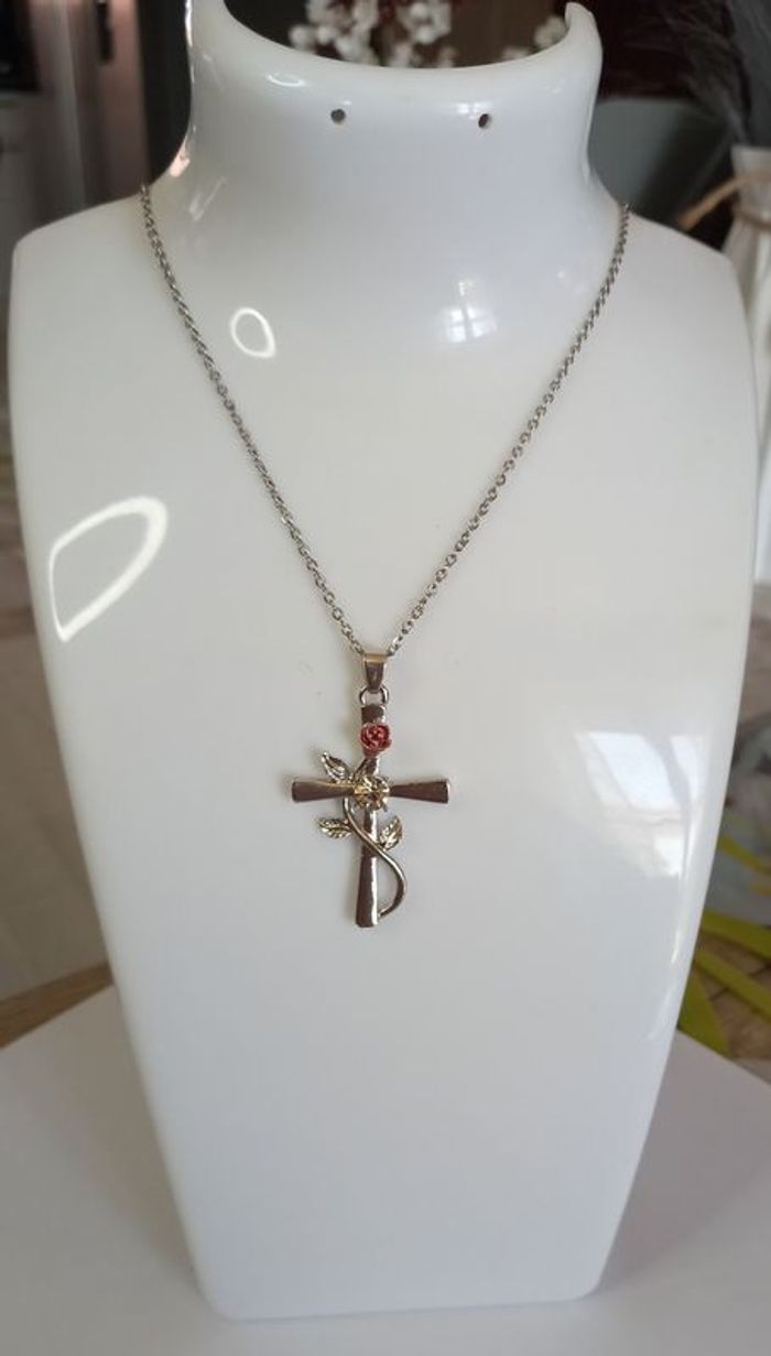 COLLIER CROIX FEMME FLEUR STRASS ARGENTE ! NEUF ! collier coloris argenté Longueur : 44 cms. Dimensions de la croix : 3,5 x 2,5 cms. ( croix sertit d'un strass et d'une rose ) Envoi rapide et soigné.
