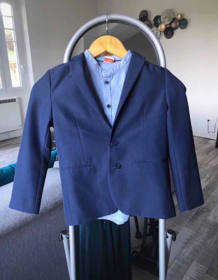 Marque: H&M Couleurs: Bleu💙 Taille: 8ans /128cm État: Excellent, porté pour une occasion 🤩 Beau blazer bleu pour enfant, acheté pour un mariage, en parfait état 😍, la chemise est également disponible dans le dressing