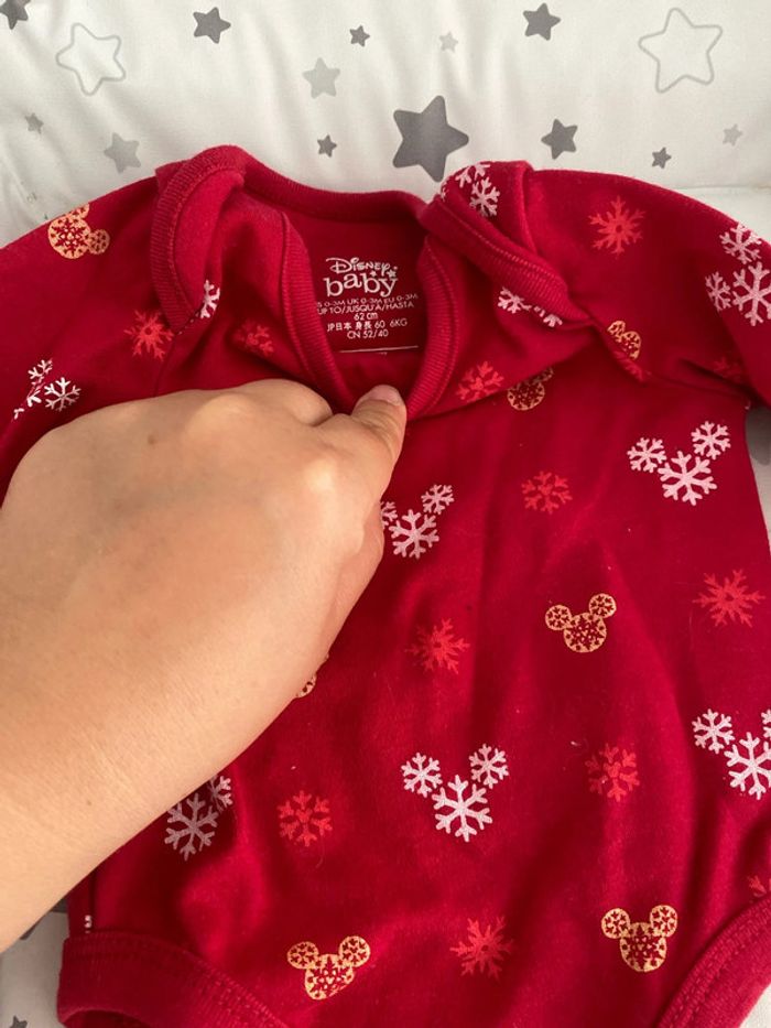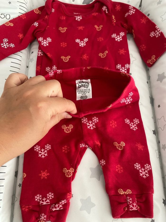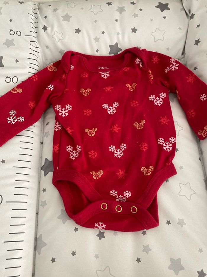 Ensemble Disney Baby 0-3 mois. Un petit pantalon tout doux excellent état aucune tache. Et un body manches longues col américain. Excellent état aucune tache. Couleur rouge