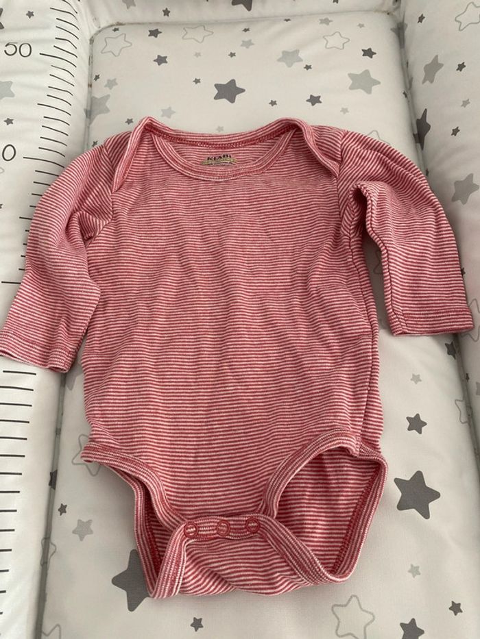Bodie manches longues bébé mixte 3 mois. Marque KIABI. Aucune tache, excellent état. Fermeture col américain. Blanc rayé rouge.