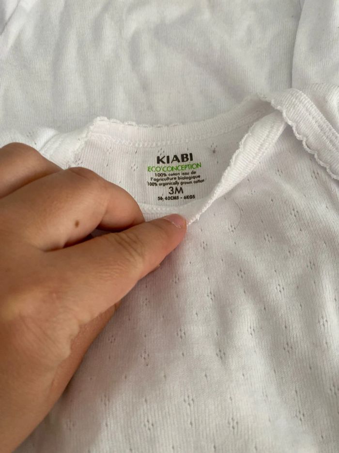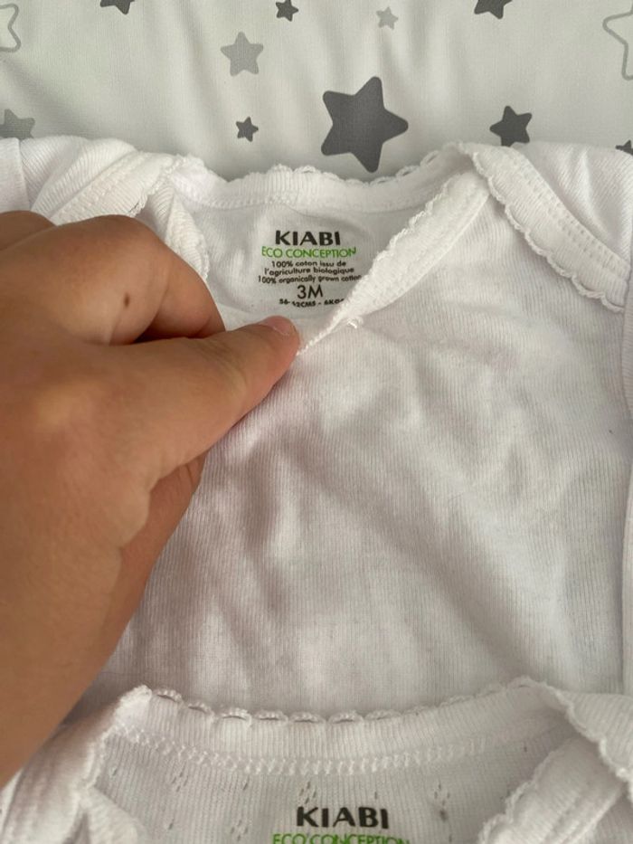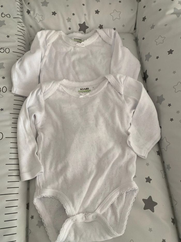 Lot de 2 bodies manches longues blanc fermeture col américain. Très bon état. Marque KIABI