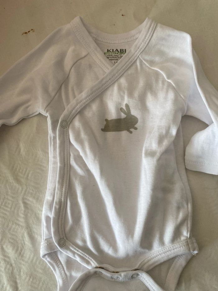 Bodie bébé mixte 1 mois blanc petit lapin. Marque Kiabi. Excellent état aucune tache. Bodie croisé