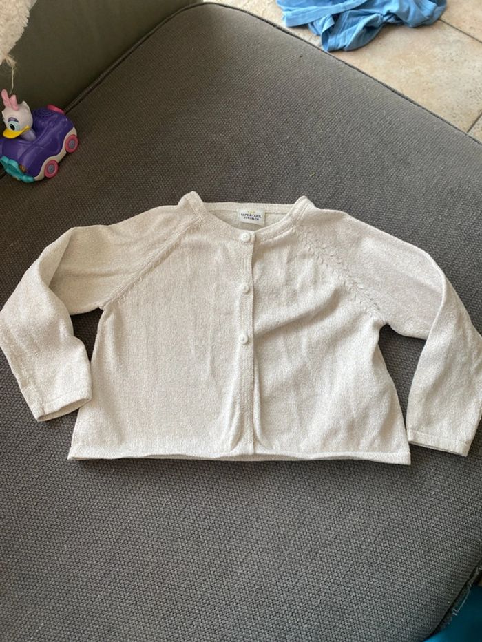 Gilet bébé fille 23 mois crème à paillettes. Excellent état aucune tache. Un basique. Marque TAO.