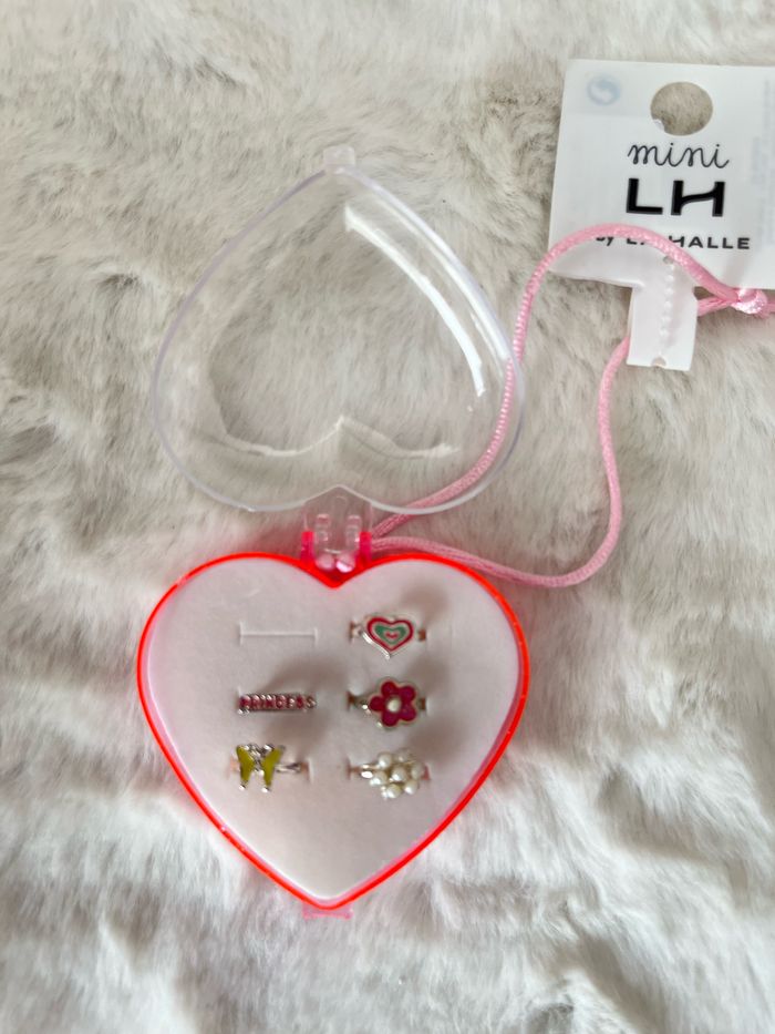 Coffret cœur bijoux fantaisies comprenant 5 bagues ajustables Neuves jamais portées