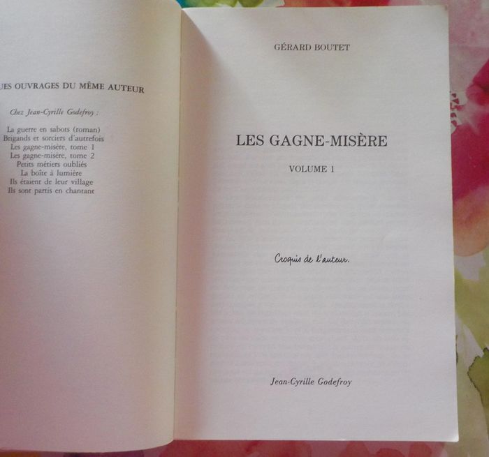 LES GAGNE-MISERE Tome 1 PETITS METIERS OUBLIES par Gérard BOUTET Ed. Jean-Cyrille Godefroy Bon état La collection "Les gagne-misère" est consacrée à l'ancien artisanat. Chaque volume évoque de quatorze à vingt métiers différents, de vielles façons ou des besognes saisonnières, des gestes pratiquement disparus aujourd'hui. Ces ouvrages ont été couronnés par l'Académie française #martinekrvessais