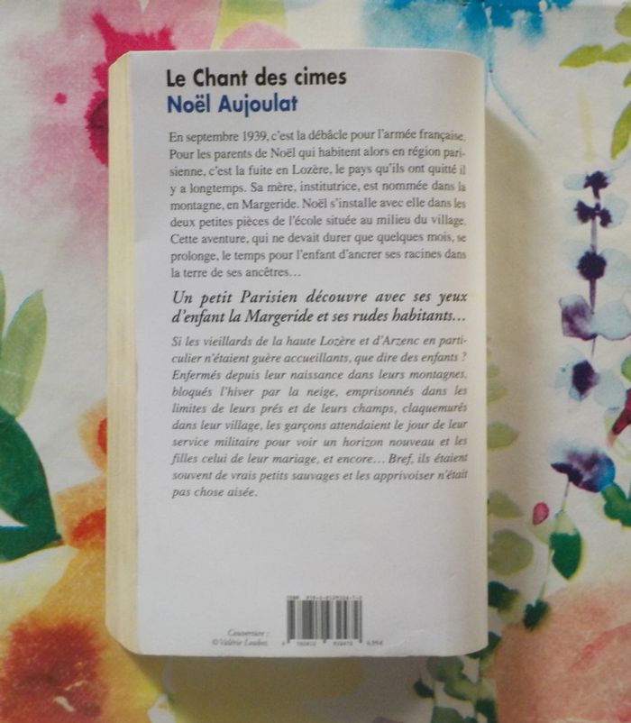 LE CHANT DES CIMES de Noël AUJOULATnEd. de Borée Terre de Poche Bon état, pages jaunies, premières pages un peu gondolées En septembre 1939, c'est la débâcle pour l'armée française. Pour les parents de Noël qui habitent alors en région parisienne, c'est la fuite en Lozère, le pays qu'ils ont quitté il y a longtemps. Sa mère, institutrice, est nommée dans la montagne, en Margeride. Noël s'installe avec elle dans les deux petites pièces de l'école située au milieu du village. Cette aventure, qui ne devait durer que quelques mois, se prolonge, le temps pour l'enfant d'ancrer ses racines dans la terre de ses ancêtres... #martinekrvromans