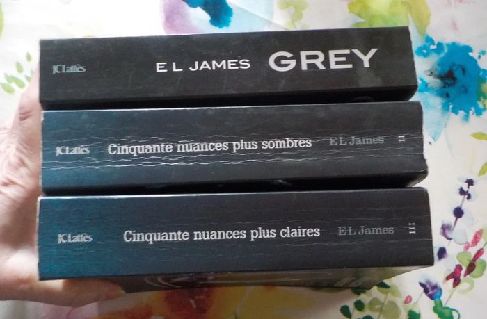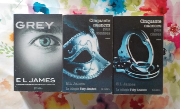 CINQUANTE NUANCES DE GREY Trilogie de E L JAMES Ed. J.C. Lattès Cinquante nuances de Grey - Très bon état Cinquante nuances plus sombres - Bon état, une marque de pliure dans l'angle inférieur droit de la 1ère de couverture, pages un peu jaunies Cinquante nuances plus claires - Bon état, pages un peu jaunies #martinekrvromans