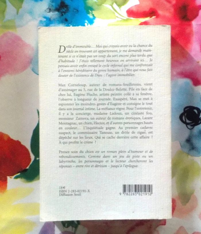 PRENEZ SOIN DU CHIEN de J.M. ERRE Ed. Buchet.Chastel Très bon état Max Corneloup, auteur de romans-feuilletons, vient d'emménager au 5, rue de la Doulce-Belette. Pile en face de chez lui, Eugène Fluche, artiste peintre collé à sa fenêtre, l'observe à longueur de journée. Exaspéré, Max se met à espionner les moindres gestes d'Eugène et consigne le tout dans son journal intime. La méfiance règne. Pour l'entretenir, il y a la concierge, madame Ladoux, un cinéaste fou, monsieur Zamora, un auteur de romans éro tiques, Lazare Montagnac, un chien, Hector, et d'autres personnages hauts en couleur... L'inquiétude gagne. Au premier cadavre suspect, le commissaire Taneuse, un drôle de zigue, est dépêché sur les lieux. Qui se cache derrière cette affaire ? A qui profite le crime ? "Prenez soin du chien" est un roman plein d'humour et de rebondissements. Comme dans un jeu de piste ou un labyrinthe, les personnages et le lecteur chercheront les réponses - entre rire et dérision - jusqu'à l'épilogue. #martinekrvromans