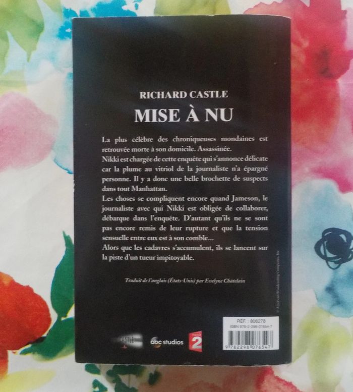 MISE A NU de Richard CASTLE Ed. France Loisirs Bon état, pages jaunies marque de pliure dans l'angle inférieur droit de la 1ère de couverture La plus célèbre des chroniqueuses mondaines est retrouvée morte à son domicile. Assassinée. Nikki Heat est chargée de cette enquête qui s’annonce délicate car la plume au vitriol de la journaliste n’a épargné personne. Il y a donc une belle brochette de suspects dans tout Manhattan. Les choses se compliquent encore quand Jameson Rook, le journaliste avec qui Nikki est obligée de collaborer, débarque dans l’enquête. D’autant que Heat et Rook ne sont pas encore remis de leur rupture et que la tension sensuelle entre eux est à son comble… Alors que les cadavres s’accumulent, ils se lancent sur la piste d’un tueur impitoyable. Ils vont devoir naviguer avec doigté parmi les stars et les voyous, les prostituées et les chanteurs, les hommes politiques et les sportifs célèbres. Une nouvelle affaire explosive pour le duo de choc ! #martinekrvthrillers