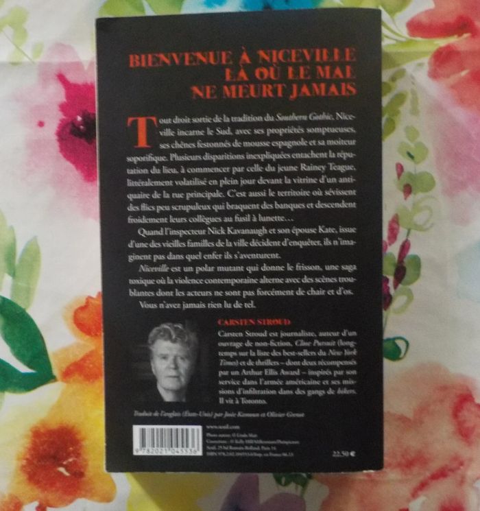 NICEVILLE de Carsten STROUD Ed. du Seuil Bon état Coins de la 1ère de couverture un peu abimés marque de pliure dans l'angle inférieur droit de la 1ère de couverture Tout droit sortie de la tradition du Southern Gothic, Niceville incarne le Sud, avec ses propriétés somptueuses, ses chênes festonnés de mousse espagnole et sa moiteur Soporifique. Plusieurs disparitions inexpliquées entachent la réputation du lieu, à commencer par celle du jeune Rainey Teague. littéralement volatilisé en plein jour devant la vitrine d'un antiquaire de la rue principale. C'est aussi le territoire où sévissent des flics peu scrupuleux qui braquent des banques et descendent froidement leurs collègues au fusil à lunette… Quand l'inspecteur Nick Kavanaugh et son épouse Kate, issue d'une des vieilles familles de la ville décident d'enquêter, ils n'imaginent pas dans quel enfer ils s'aventurent... Niceville est un polar mutant qui donne le frisson, une saga toxique où la violence contemporaine alterne avec des scènes troublantes dont les acteurs ne sont pas forcément de chair et d'os. Vous n'avez jamais rien lu de tel. #martinekrvromans