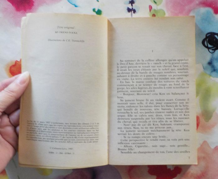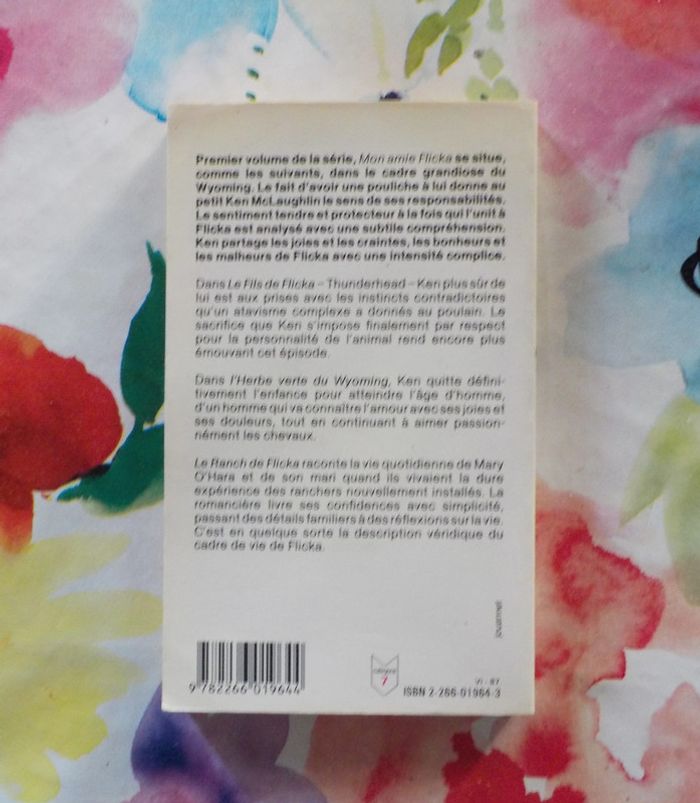 MON AMIE FLICKA de Mary O'HARA Ed. Presses Pocket Bon état - pages jaunies Premier volume de la série, "Mon amie Flicka" se situe, comme les suivants, dans le cadre grandiose du Wyoming. Le fait d'avoir une pouliche à lui donne au petit Ken McLaughlin le sens de ses responsabiités. Le sentiment tendre et protecteur à la fois qui l'unit à Flicka est analysé avec une subtile compréhension. Ken partage les joies et les craintes, les bonheurs et les malheurs de Flicka avec une intensité complice. #martinekrvromans #martinekrvlivresenfants