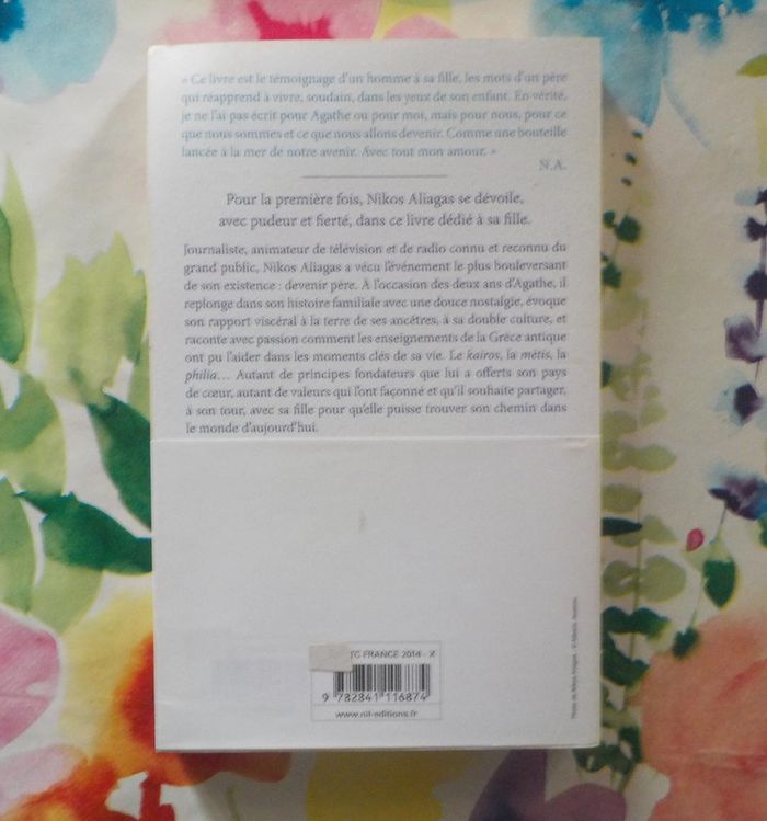 CE QUE J'AIMERAIS TE DIRE par Nikos ALIAGAS Ed. NiL Bon état, pages jaunies " Ce livre est le témoignage d'un homme à sa fille, les mots d'un père qui réapprend à vivre, soudain, dans les yeux de son enfant. En vérité, je ne l'ai pas écrit pour Agathe ou pour moi, mais pour nous, pour ce que nous sommes et ce que nous allons devenir. Comme une bouteille lancée à la mer de notre avenir. Avec tout mon amour. " N.A. Pour la première fois, Nikos Aliagas se dévoile, avec pudeur et fierté, dans ce livre dédié à sa fille. Journaliste, animateur de télévision et de radio connu et reconnu du grand public, Nikos Aliagas a vécu l'événement le plus bouleversant de son existence : devenir père. À l'occasion des deux ans d'Agathe, il replonge dans son histoire familiale avec une douce nostalgie, évoque son rapport viscéral à la terre de ses ancêtres, à sa double culture, et raconte avec passion comment les enseignements de la Grèce antique ont pu l'aider dans les moments clés de sa vie. Le kairos, la mètis, la philia... Autant de principes fondateurs que lui a offerts son pays de coeur, autant de valeurs qui l'ont façonné et qu'il souhaite partager, à son tour, avec sa fille pour qu'elle puisse trouver son chemin dans le monde d'aujourd'hui. #martinekrvbiographies