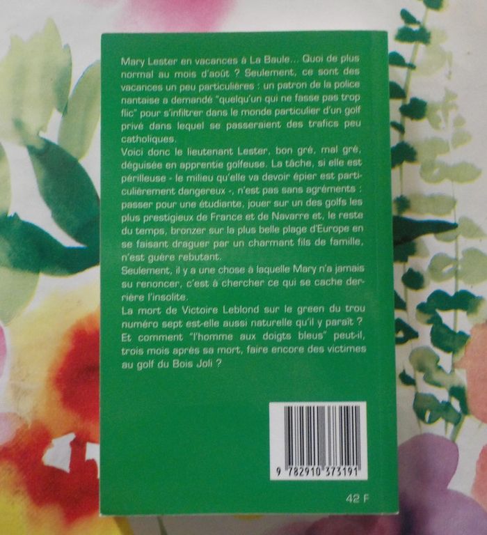 UNE ENQUETE DE MARY LESTER N°07 L’HOMME AUX DOIGTS BLEUS de Jean FAILLER Ed. Alain Bargain Très bon état Mary Lester en vacances à La Baule… Quoi de plus normal au mois d’août ? Seulement, ce sont des vacances un peu particulières : un patron de la police nantaise a demandé « quelqu’un qui ne fasse pas trop flic » pour s’infiltrer dans le monde particulier d’un golf privé dans lequel se passeraient des trafics peu catholiques. Voici donc le lieutenant Lester, bon gré, mal gré, déguisée en apprentie golfeuse. La tâche, si elle est périlleuse – le milieu qu’elle va devoir épier est particulièrement dangereux-, n’est pas sans agréments : passer pour une étudiante, jouer sur un des golfs les plus prestigieux de France et de Navarre et, le reste du temps, bronze sur la plus belle plage d’Europe en se faisant draguer par un charmant fils de famille, n’est guère rebutant. Seulement, il y a une chose à laquelle Mary n’a jamais su renoncer, c’est à chercher ce qui se cache derrière l’insolite. La mort de Victoire Leblond sur le green du trou numéro sept est-elle aussi naturelle qu’il y paraît ? Et comment « l’homme aux doigts bleus » peut-il, trois mois après sa mort, faire encore des victimes au golf du Bois Joli ? #martinekrvthrillers #martinekrvthrillersfailler