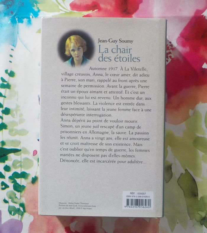 LA CHAIR DES ETOILES de Jean-Guy SOUMY Ed. France Loisirs Très bon état à part quelques rousseurs Automne 1917. A La Viletelle, village creusois, Anna, le coeur amer, dit adieu à Pierre, son mari, rappelé au front après une semaine de permission. Avant la guerre, Pierre était un époux aimant et attentif. Et c'est un inconnu qui lui est revenu. Un homme dur, aux gestes blessants. La violence est entrée dans leur intimité, laissant la jeune femme face à une désespérante interrogation. Anna dépérit au point de vouloir mourir. Simon, un jeune juif rescapé d'un camp de prisonniers en Allemagne, la sauve. La passion les réunit. Anna a vingt ans, elle est amoureuse et se croit maîtresse de son existence. Mais c'est oublier qu'en temps de guerre, les femmes mariées ne disposent pas d'elles-mêmes. Dénoncée, elle est incarcérée pour adultère... #martinekrvromans